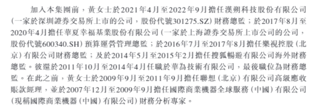 简历浮现,黄堃曾在联思、华为、搜狐及乐视担任财务总监、国外财务总监等职位。
